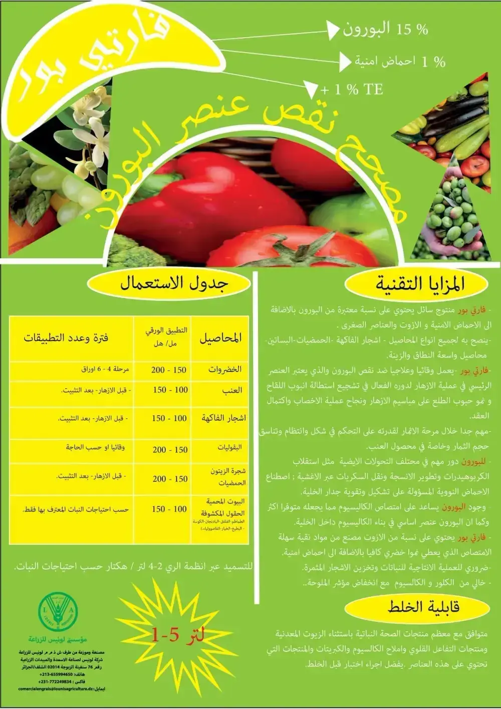 تركيبة متكاملة: يحتوي على 15% بورون مع أحماض أمينية لضمان نمو خضري مثالي.