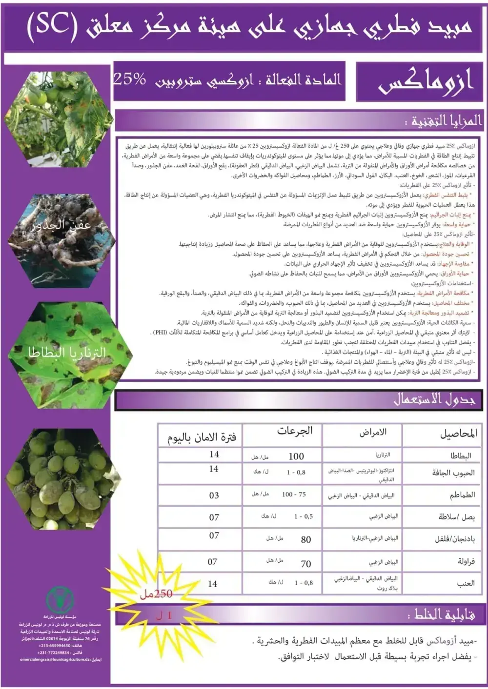 مبيد فطري جهازي وقائي وعلاجي واسع النطاق من عائلة ستروبيلورين. يحسن جودة المحصول ويطيل فترة الإخضرار لزيادة المردودية.