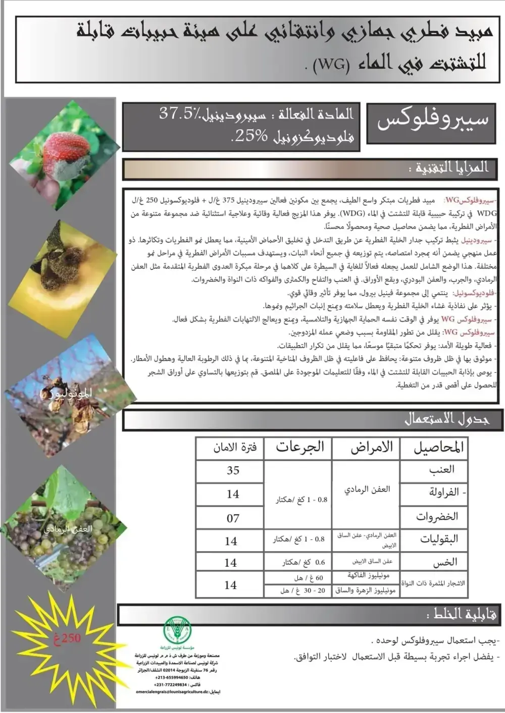 مبيد فطري مبتكر واسع الطيف يجمع بين مكونين فعالين لضمان حماية استثنائية. يقدم فعالية وقائية وعلاجية ضد العفن الرمادي والأمراض الفطرية الأخرى.