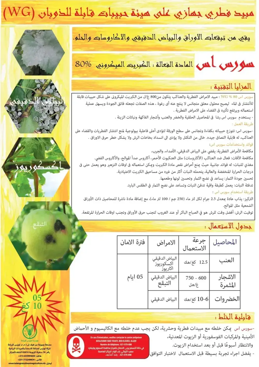| العنب | البياض الدقيقي - اكسكوريوز - اكاريوز | 12.5 كغ / هك | 05 |