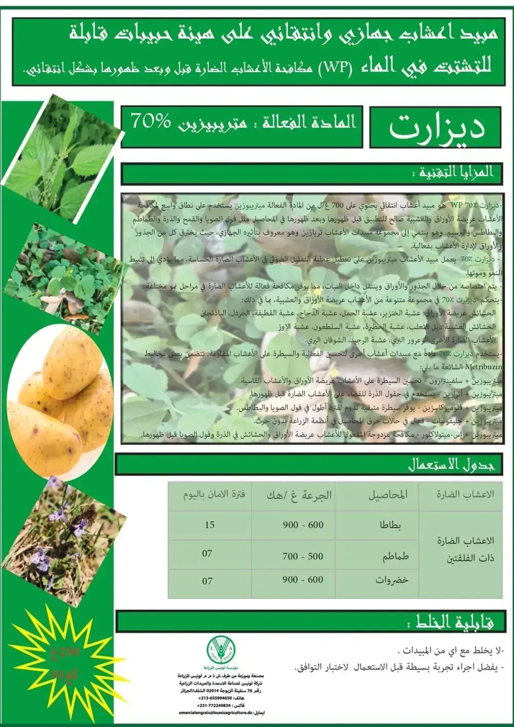 يكافح مجموعة واسعة من الحشائش الضارة في البطاطس والطماطم ومحاصيل أخرى