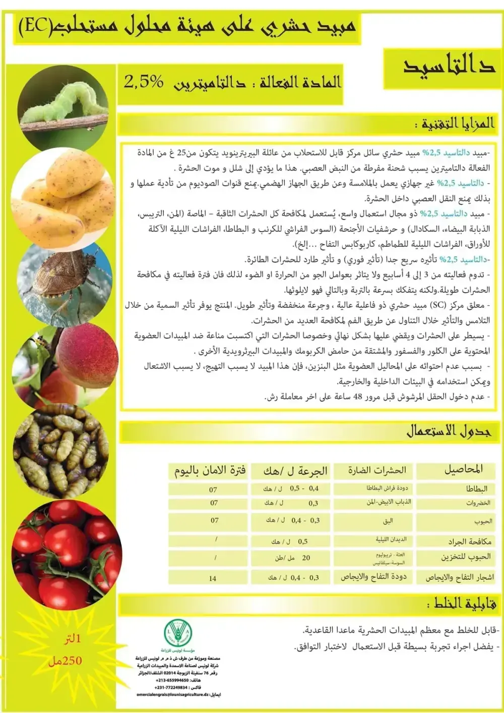 | الخضروات | الذباب الابيض - المن | 0.3 ل / هك | 07 |
