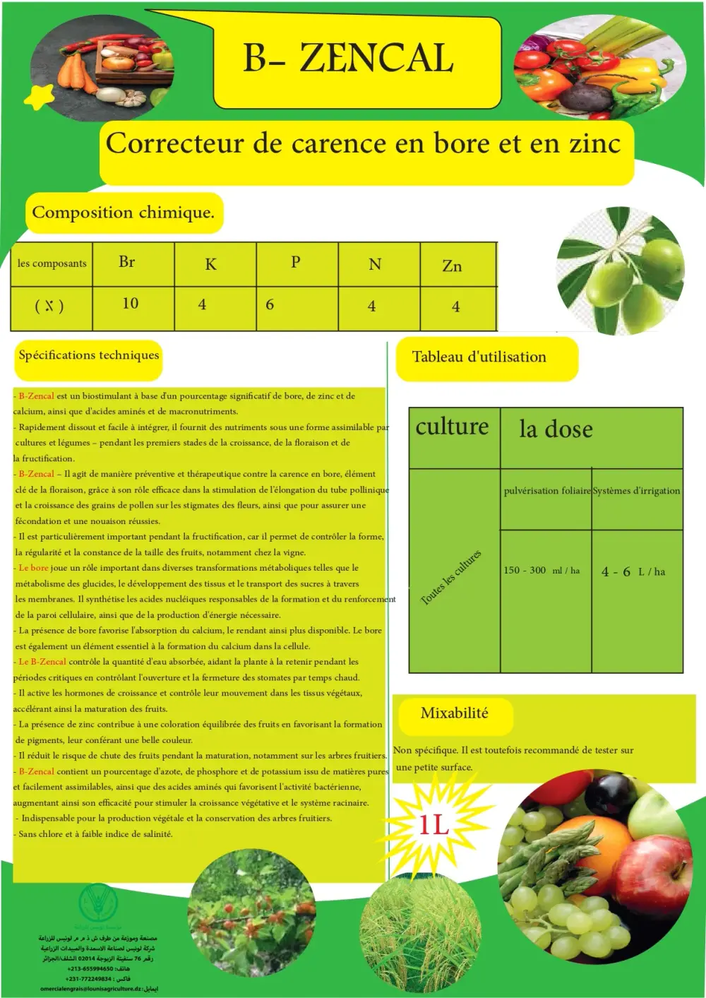 Nutrition rapide : Formule équilibrée, soluble et rapide en bore, zinc, calcium et acides aminés.