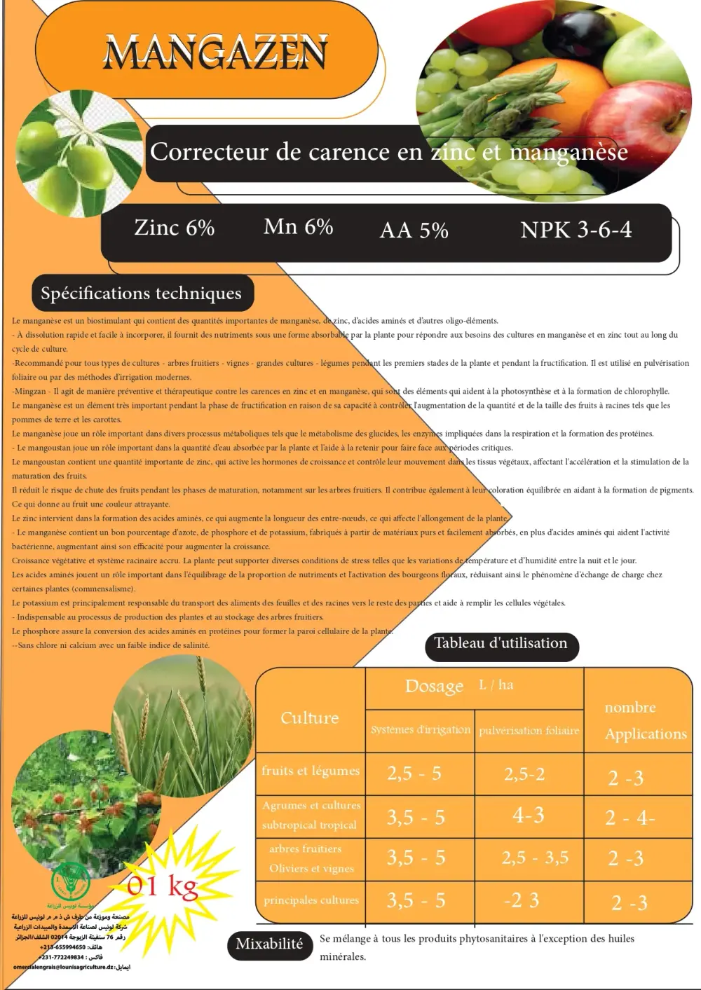 Correcteur de carence en Zinc et Manganèse - Stimulateur de croissance et de productivité
