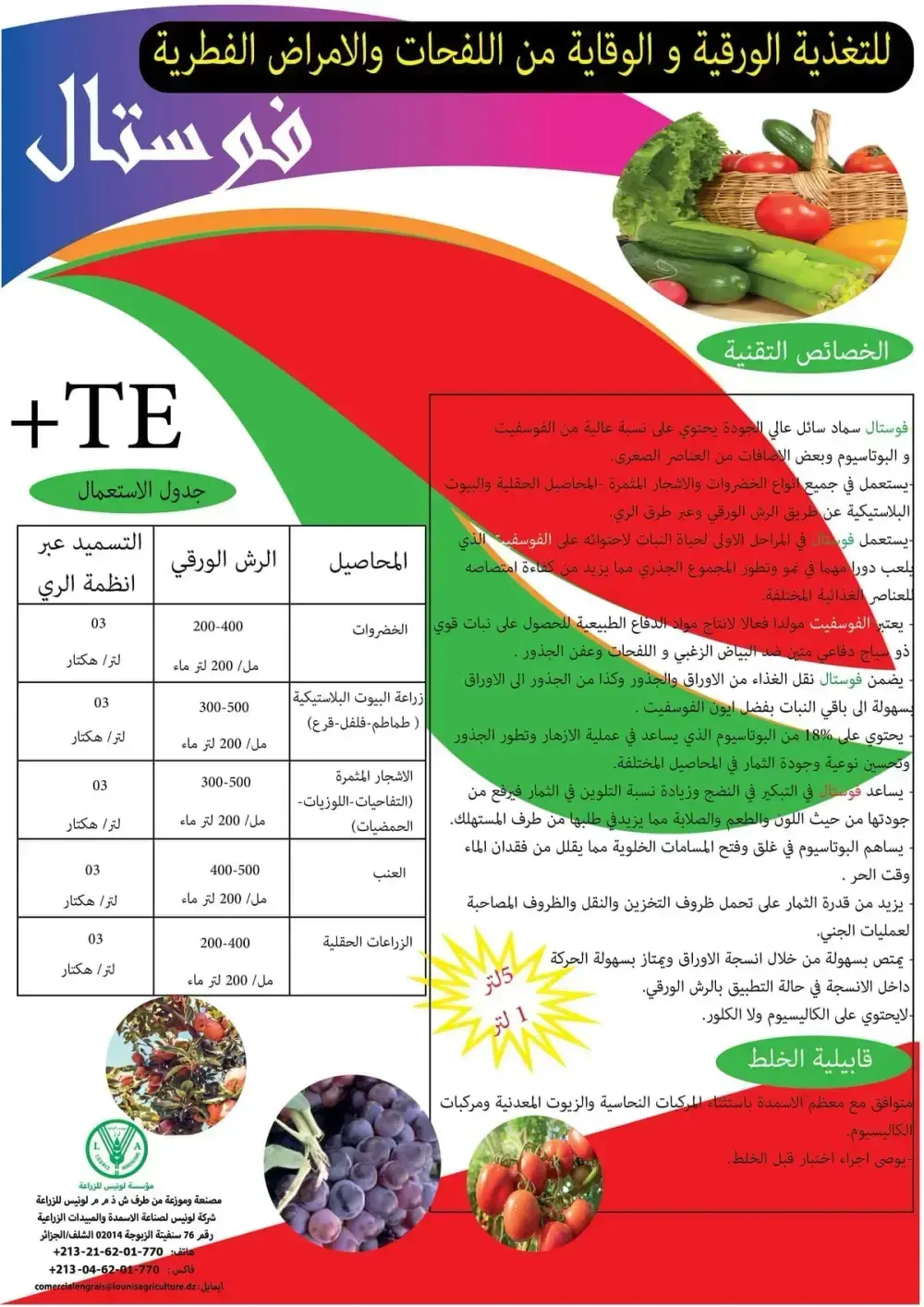 سماد سائل عالي الجودة بتركيبة فريدة غنية بالفوسفيت والبوتاسيوم، للتغذية الورقية والوقاية الفعالة من اللفحات والأمراض الفطرية.
