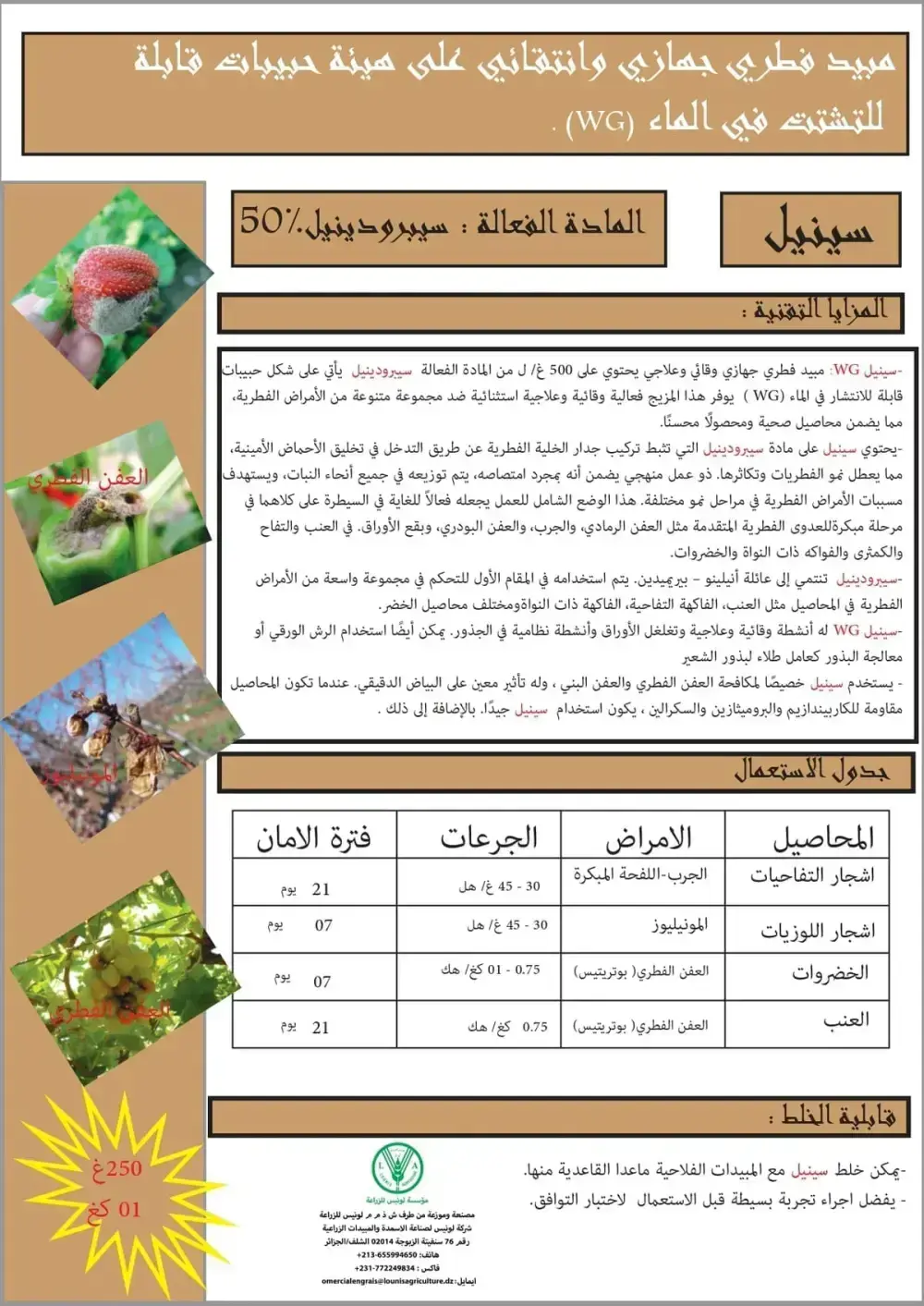 يحتوي على مادة سيبرودينيل التي تثبط تركيب جدار الخلية الفطرية عن طريق التدخل في تخليق الأحماض الأمينية مما يعطل نمو الفطريات وتكاثرها. يتم توزيعه منهجياً في جميع أنحاء النبات بمجرد امتصاصه عبر الأوراق أو الجذور.